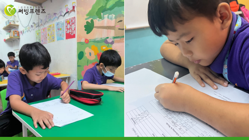 샘난민센터에서 아이들은 한 학기 동안 배운 것들을 복습하며 점검하는 시험 기간을 보냈습니다.