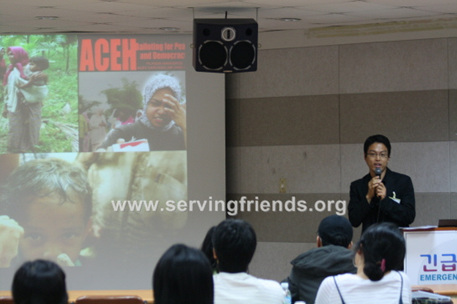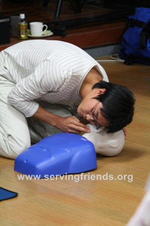 2008년 10월 4차 긴급구호 세미나를 개최했습니다.써빙프렌즈가 경험했던 긴급구호 상황들, 긴급상황시 물품, 긴급상황시 응급의료(심폐소생술) 등전문가분들을 초빙하여 경험할 수 없었던 긴급구호 상황들을 강의를 통하여 들었습니다.사진설명,1. 아체 긴급구호 강의2. 긴급상황시 응급처지 강의3. 심폐소생술 강의 후 실습하는 수강자4. 긴급상황시 필요한 비상물품 소개5. 긴급구호 세미나 단체사진